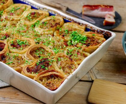Wie macht man Speckknödel aus Kartoffelteig?